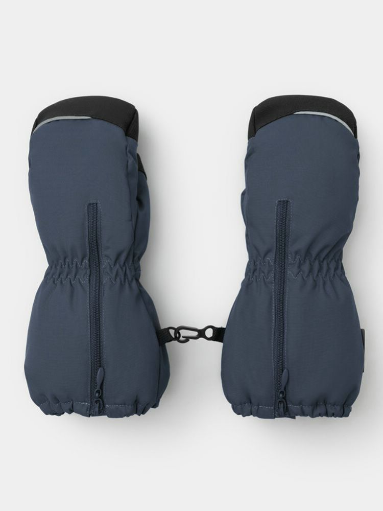Мягкий подклад из флиса. Пластиковый карабин для скрепления рукавиц между собой. Светоотражающие элементы.