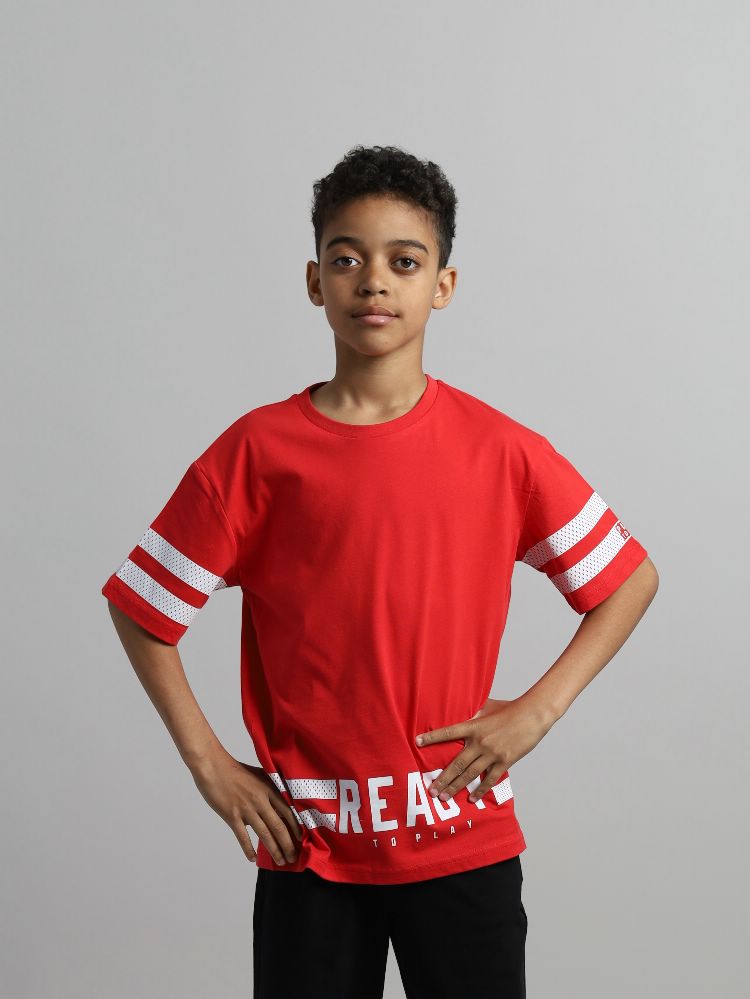 Футболка для мальчика свободного покроя. Рукав втачной, горловина обработана притачной бейкой из рибаны с лайкрой. Перед и рукава декорированы принтом.